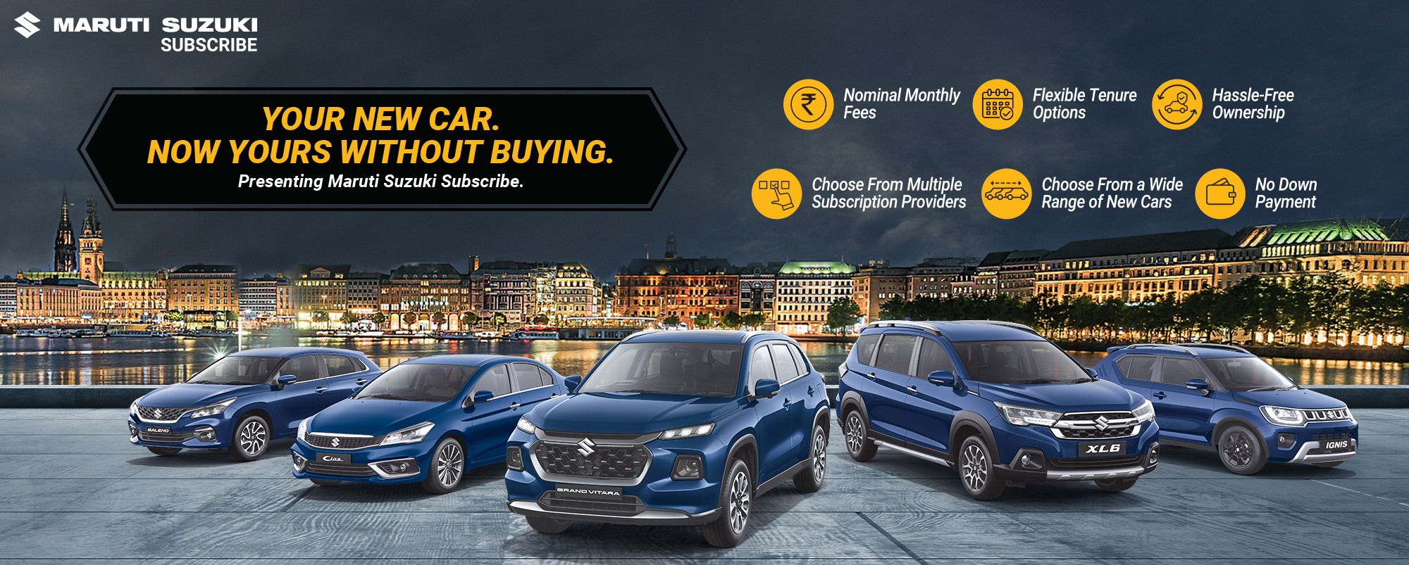 Maruti Suzuki Subscribe enables all customers to enjoy driving their preferred Maruti Suzuki cars without having to deal with all the financial responsibilities that come with owning a car.All you need to do is opt for a monthly subscription plan at a fixed monthly fee, which includes the routine maintenance and insurance costs, and choose a flexible tenure. At Perfect Auto in, , Junagadh, all Hatchback, Sedan, SUV, the MUV models line-up includes Baleno, Invicto, EVitara, Jimny, Ciaz, Ignis, Fronx, Grand Vitara, XL6. Here, you will enjoy Maruti Suzuki Subscribe benefits such as: